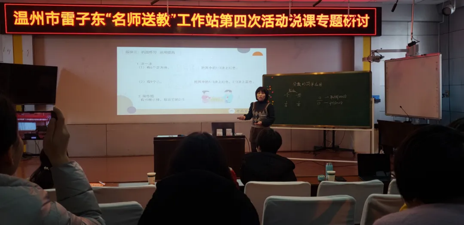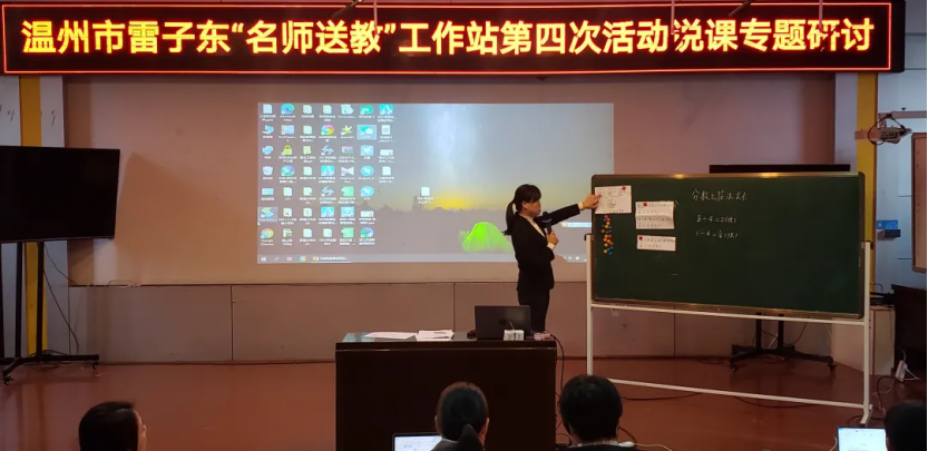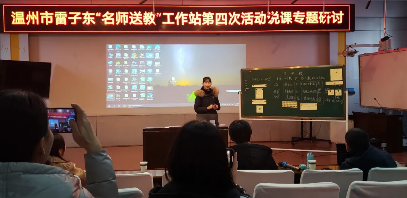 深冬已至,却无寒意。为了提升青年教师课堂教学质量、提高教材解读能力,培养多元开放地教学设计思维,切实增强说课实战能力,2022年1月23日,温州市雷子东“名师送教”工作站第二次说课专题研讨活动在苍南县少艺校举行。本次活动由少艺校郑小林老师主持,雷子东名师工作室全体成员参加,苍南县教师发展中心小学数学教研员陈裕鑫、黄静陪同参与。
