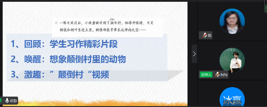 7月7日上午,在柯珂老师的带领下,工作室举办了“基于学情的习作教学设计”线上交流会。此次活动共有三个环节:习作教学设计说课习作教学小妙招分享以及导师引领。