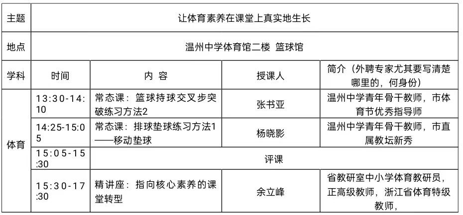 为更好地推进“名师送教”活动,充分发挥名师、骨干教师引领作用,兹定于11月25日举行温州市陈永概体育“名师送教”工作室第二次活动,现将具体事项通知如下: