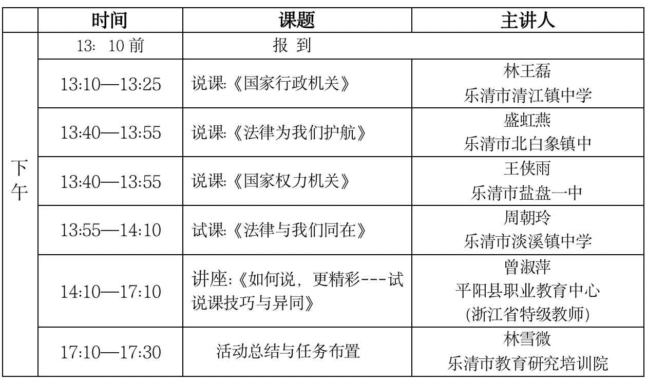 为进一步贯彻落实《义务教育道德与法治课程标准(2022年版)》,提高教师说课水平和执教能力,促进教师专业成长。经研究,决定举行温州市林雪微名师工作室第5次活动。现将有关事项通知如下:
