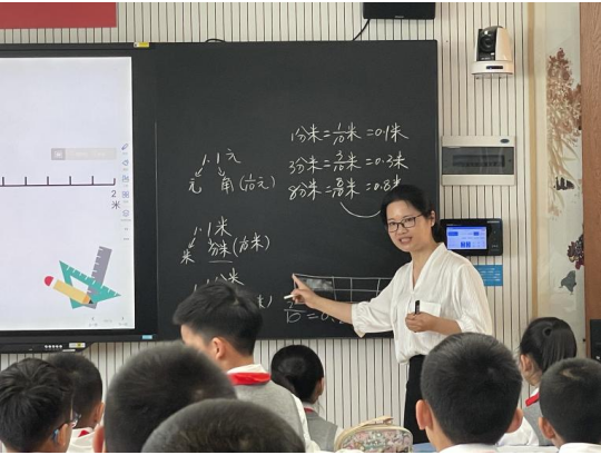 王玉香老师精心选取生活中的小数实例,着墨小数的读法及其构成部分的名称。她利用线段图和币值单位,引导学生准确数出0.3,并在这一过程中深入体验十进制计数法的内在逻辑;接着,借助线段图、计数器等直观工具,引导学生发现0.3元和0.3米之间的相似之处,从而深刻理解小数概念的本质。最后,王老师巧妙地设计了关于1.3米的情境,进一步巩固和拓展学生对小数概念的理解和应用。
