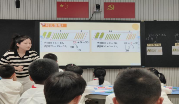 下午,张思思老师带给我们的是《两位数加一位数》。张老师根据一年级学生的年龄特性,采用闯关游戏的形式进行教学,通过运用小棒摆设、图形圈划以及任务倾听等方式,使学生深入理解算理,确保知识落实到位。此外,张老师还通过对比不同算法以及与前一课知识的关联,启发学生的思考。课尾,老师设计多层练习,旨在巩固算理以及满十进一的概念,拓展学生的知识体系。