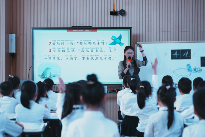 温州市实验小学的林姝琦老师带来了二上《坐井观天》的课例展示,林老师结合整体单元进行设计,以“小小侦探员”的情境引入,梳理了小鸟与青蛙的三次对话,让学生通过代入角色朗读,了解角色的想法,读好小鸟和青蛙对话中的不同语气。引导学生关注小鸟与青蛙观点的不同之处,发展了学生的思维。