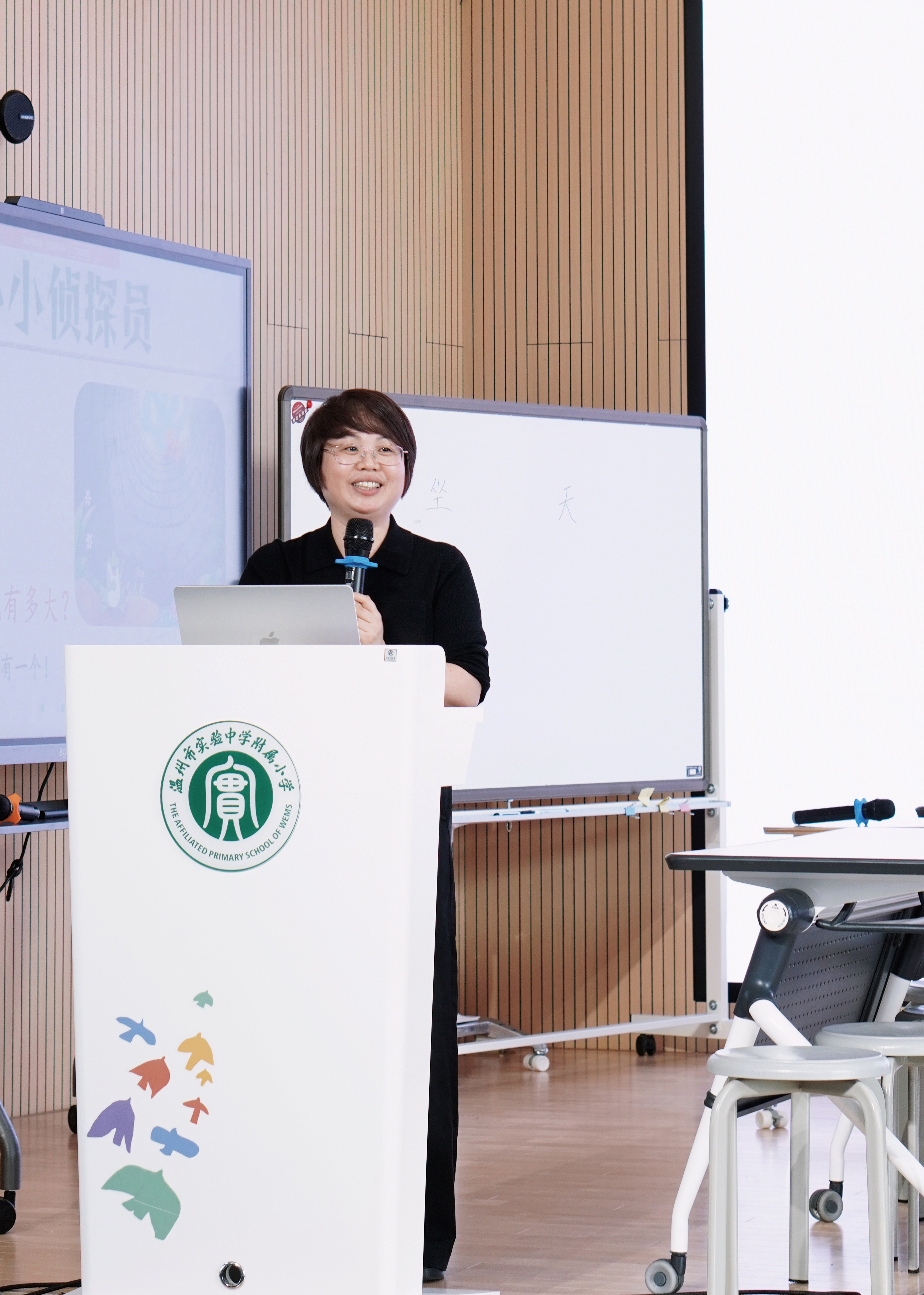 随后,叶托名师工作室的领衔人叶托老师分享了题为《智趣共生的第一学段课文教学》的观点报告,她结合自己多年的教学实践,分享了如何在第一学段课文教学中实现智趣共生的教学理念和方法,叶老师围绕理清教材的编写意图——教得准,重视基本的语文能力——学得实,建议老师们根据教学目标选择合适的教学内容,考虑学生学习学习的心理逻辑,设计适当的学习活动,让学生爱上语文。叶老师充满智慧的分享为与会教师们带来了深刻的启示和思考。