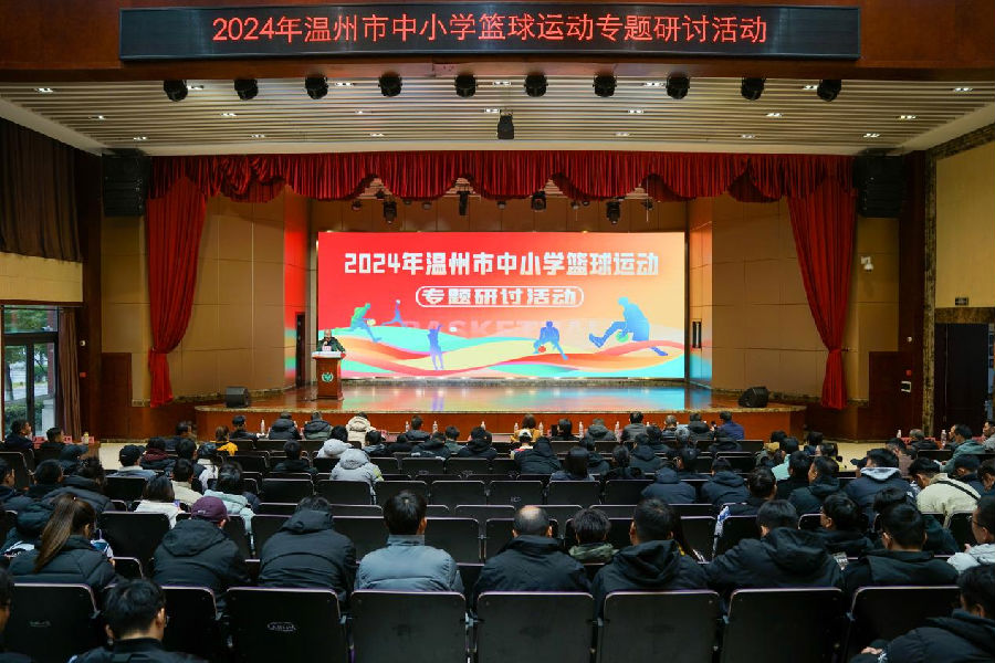 2024年12月12日,由温州市教育教学研究院主办,平阳县教师发展中心承办的2024年温州市中小学篮球运动专题研讨活动在平阳新纪元蓝田学校成功举办。来自温州市篮球协会部分理事、各县市体育教研员、各县市区篮球特色学校领导,教师代表等200多人参加此次研讨活动。