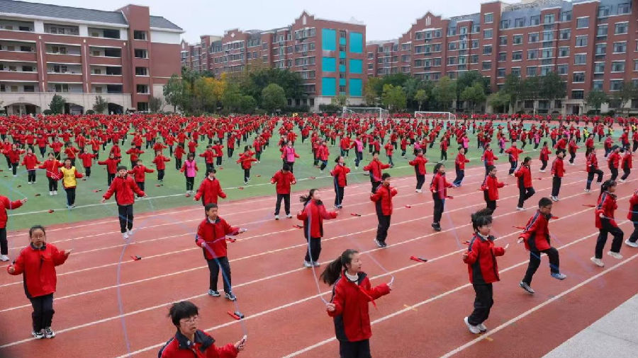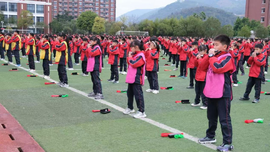 会议开始,平阳新纪元蓝田学校副校长于建国作开场致辞。他表示,学校始终践行“体育第一”的办学理念,致力于打造富有学校特色的体育品牌。此次研讨活动具有重要意义,将为学校体育改革和发展起到积极的推动作用。随后,与会者观摩了小学三至六年级、初中七至八年级大课间展示活动。学校利用长廊、连廊和楼宇间通道,合理安排进场顺序,缩短班级入场时间。大课间各环节以口令版背景音乐为主导,加入口琴吹奏的呼吸节奏,将各个练习内容紧凑衔接,实现了小学课间操自主化、规范化、序列化。同时,学校根据学生的实际情况自主编排了一套体能操,利用球类、短绳等器械,精心编排,全方位丰富大课间活动内容,全过程激发学生练习兴趣,全面提高学生身体素质。
