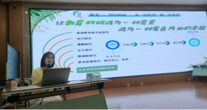 乐清北白象二小学员孙娉老师以《向下扎根 向阳而生——我的教育求索之旅》为题,讲述自己“十年磨一剑”的坚守,分享“从课堂问题寻研究教科研,在实践中悟育人真谛”的探索,在教科研方面获得了很多高层次的荣誉,字里行间藏着对自己的执着与破茧成蝶的欣喜。