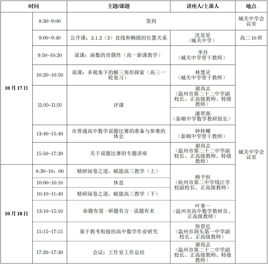 温州市 谢尚志“名师送教” 工作室于 2025年10月17日 08:30:00时到2025年10月18日 17:30:00时